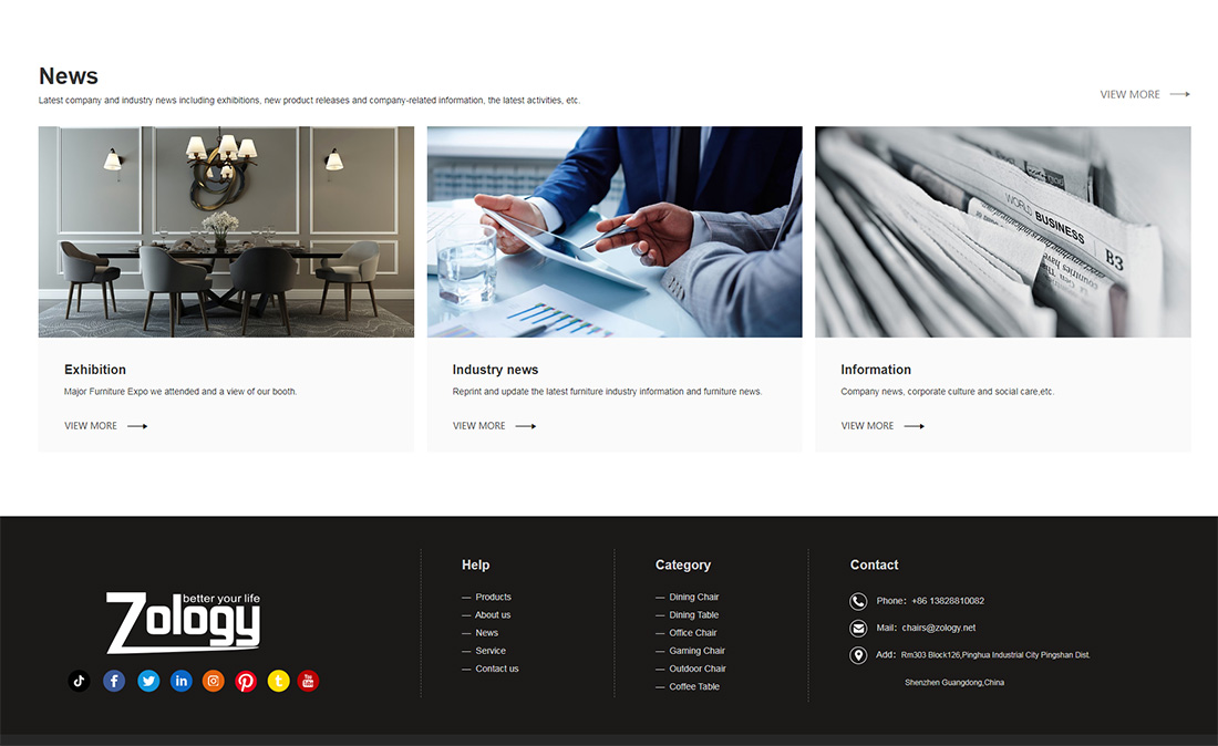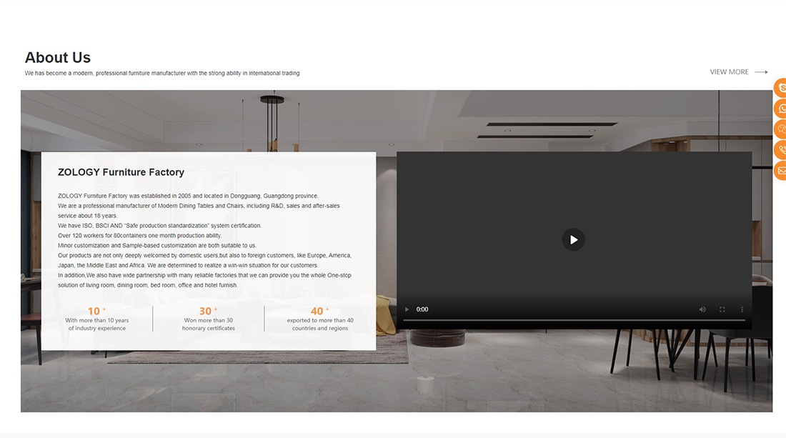 ZOLOGY Furniture Factory was established in 2005 and located in Dongguang, Guangdong province. We are a professional manufacturer of Modern Dining Tables and Chairs, including R&D, sales and after-sales service about 18 years