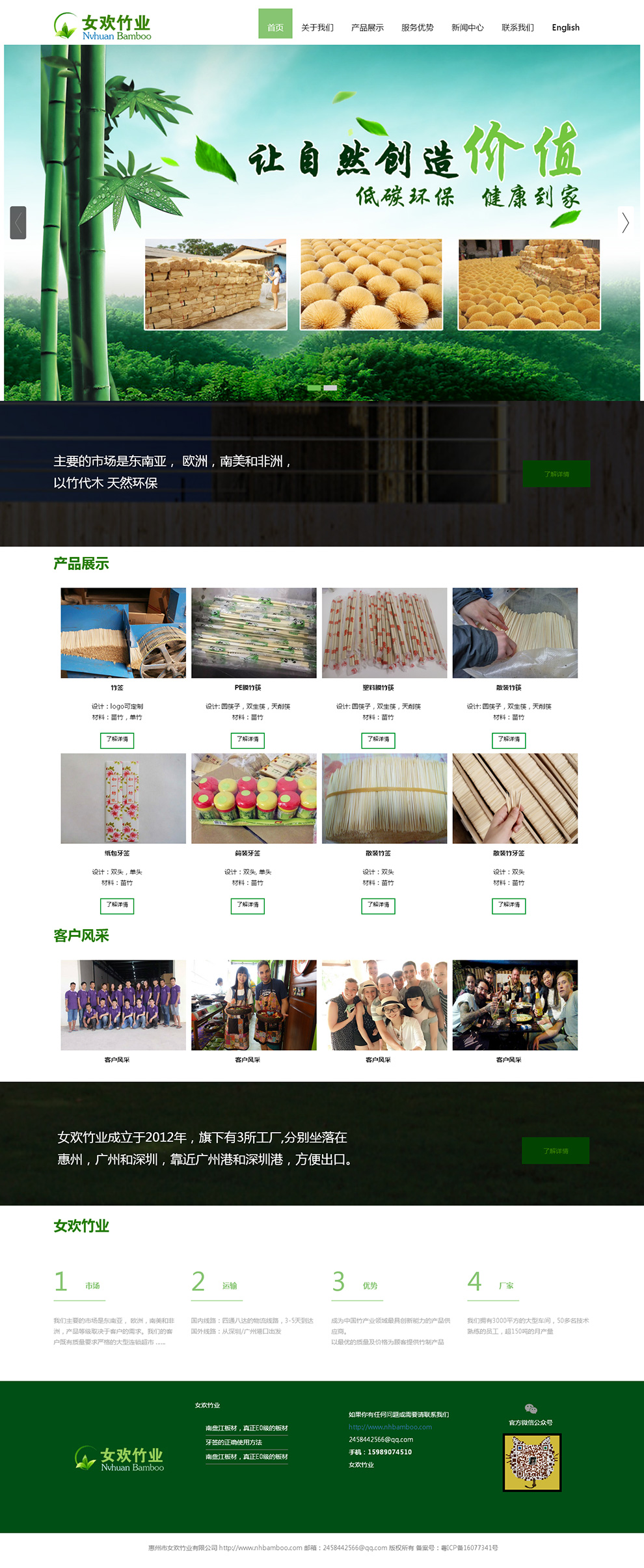 品牌网站建设案例--女欢竹业成立于2012年,旗下有3所工厂: 女欢牙签厂,女欢筷子厂,女欢竹签厂,分别坐落在惠州,广州和深圳,靠近广州港和深圳港,方便出口。作为畅销国内外竹制品的产商,我们拥有3000平方的大型车间,50多名技术熟练的员工,超150吨的月产量,另外配备烘炉和消毒车间,确保每根牙签,每双筷子,每条竹签都干燥卫生