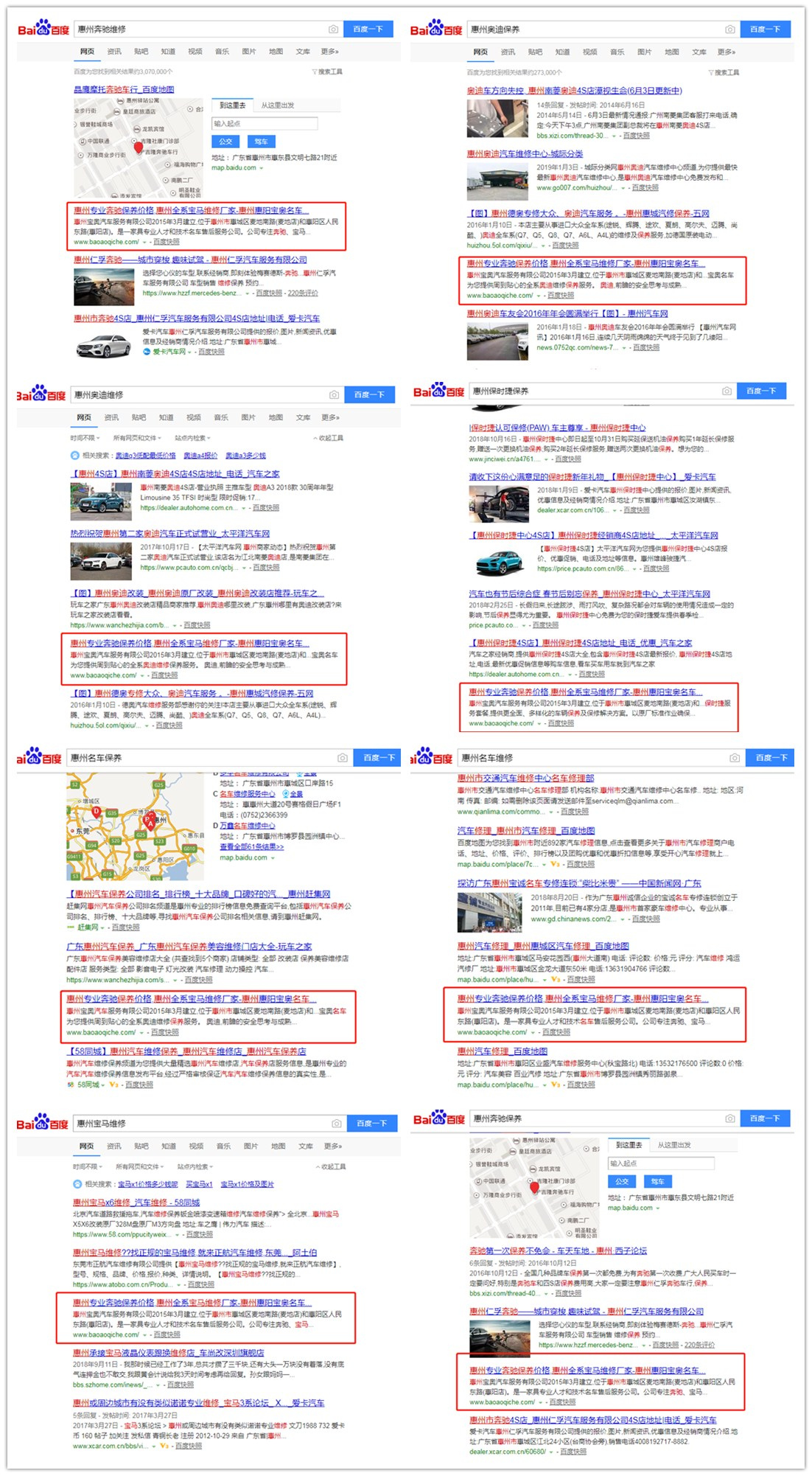 惠州宝奥汽车服务有限公司2015年3月建立,位于惠州市惠城区麦地南路(麦地店)和惠阳区人民东路(惠阳店)。是一家具专业人才和技术名车售后服务公司。公司专注奔驰、宝马、保时捷、奥迪、路虎、进口大众品牌的维修保养服务,同时为广大同行提供技术支持和指导。