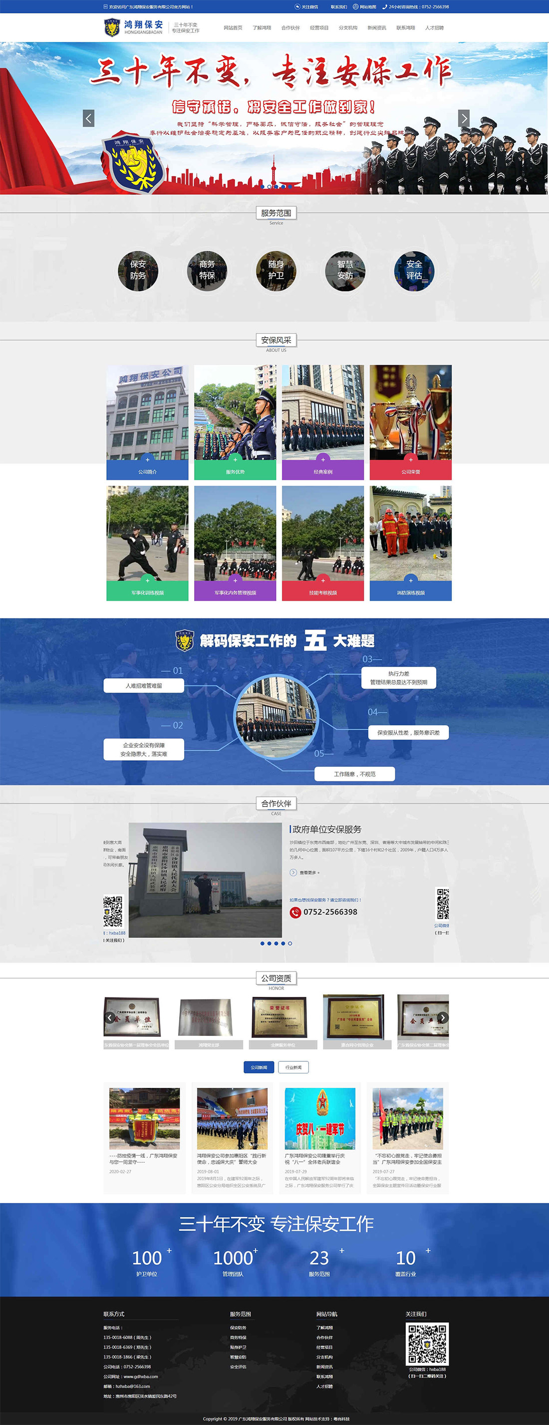 广东鸿翔保安服务有限公司是经广东省公安厅批准,广东省工商行政管理部门登记注册具有法人资格的经济实体。是广东省公安系统领导下的一支维护地方治安和保障企业安全的重要辅助力量。公司自成立以来,为物业小区、酒店、宾馆、超市、医院、厂矿等企事业单位提供多方面的保安服务,公司现拥有员工一千多人,业务分布于惠州、东莞、深圳、广州、中山、大亚湾等地区,向外省幅射延伸至安徽、江西、江苏、湖北等地,曾服务的单位有:“惠州高铁南站”,大亚湾“新华联广场(深交所上市股票代码000620)”,“彩生活物业”(港交所上市企